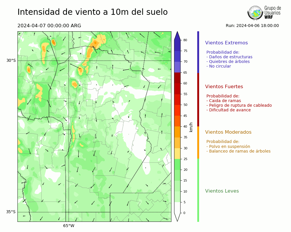 • Intensidad máxima: 10.34 km/h (07/04/2024 04hs.)