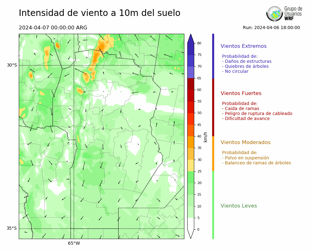 • Intensidad máxima: 10.29 km/h (07/04/2024 05hs.)