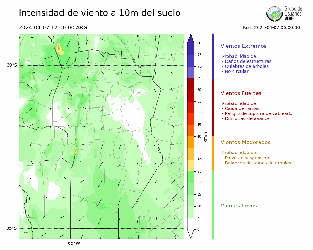 • Intensidad máxima: 10.68 km/h (07/04/2024 18hs.)