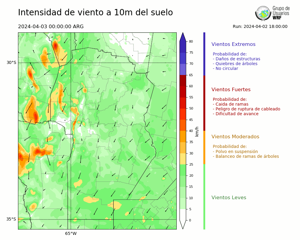 • Intensidad máxima: 9.35 km/h (03/04/2024 05hs.)