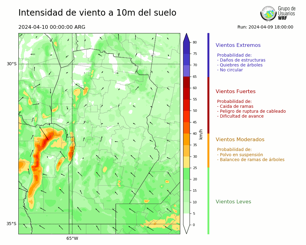 • Intensidad máxima: 17.62 km/h (10/04/2024 09hs.)