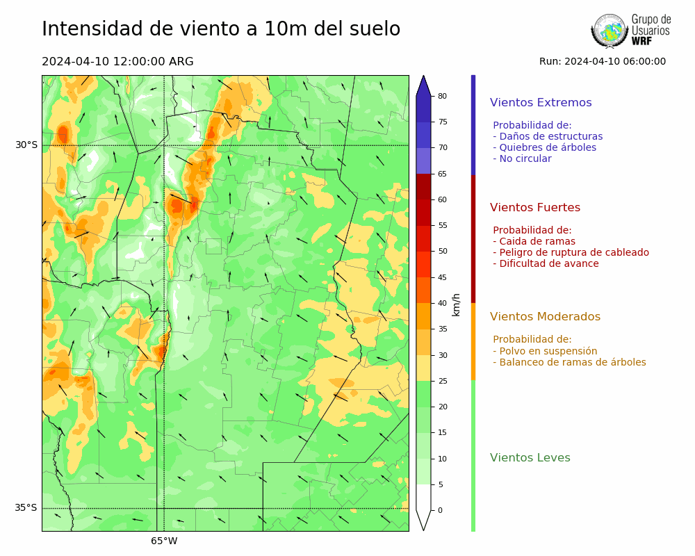 • Intensidad máxima: 24.72 km/h (10/04/2024 14hs.)