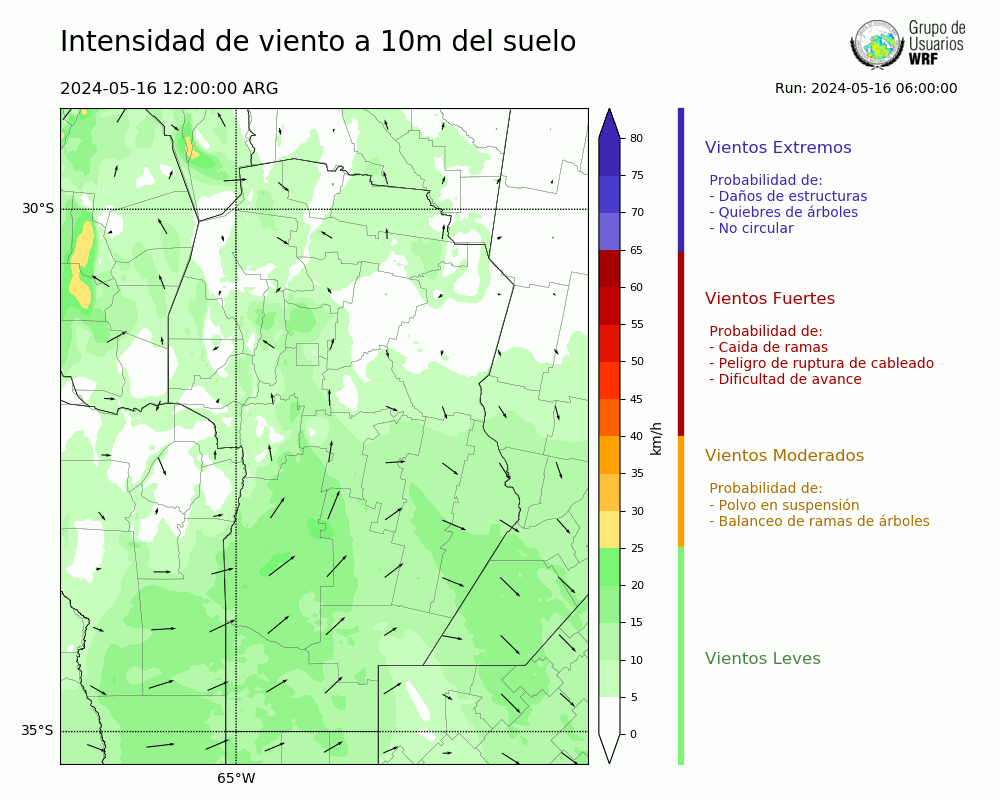 • Intensidad máxima: 14.85 km/h (16/05/2024 18hs.)