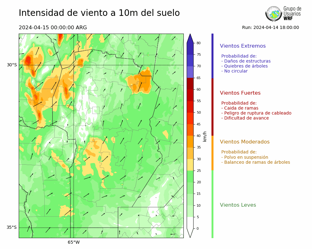 • Intensidad máxima: 15.68 km/h (17/04/2024 01hs.)