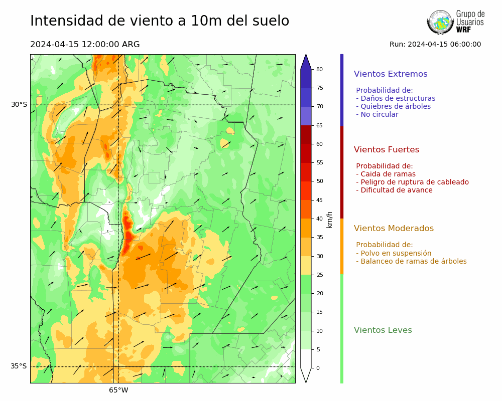 • Intensidad máxima: 15.19 km/h (15/04/2024 20hs.)