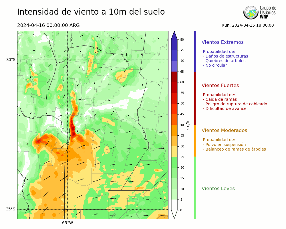 • Intensidad máxima: 11.60 km/h (18/04/2024 05hs.)