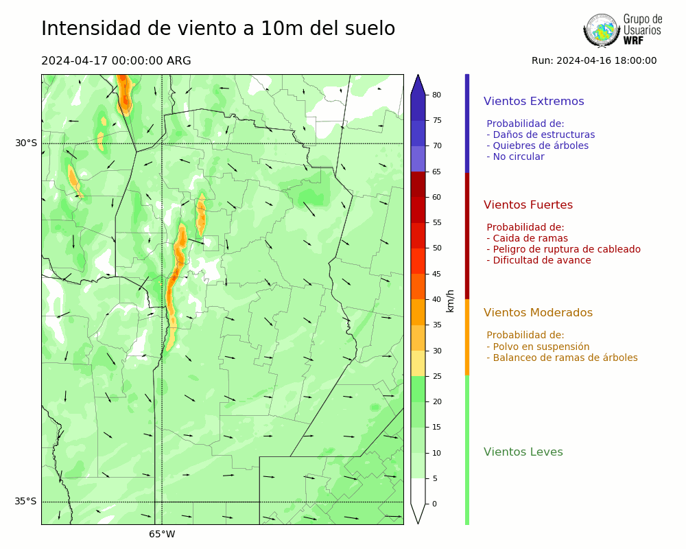 • Intensidad máxima: 11.87 km/h (17/04/2024 01hs.)