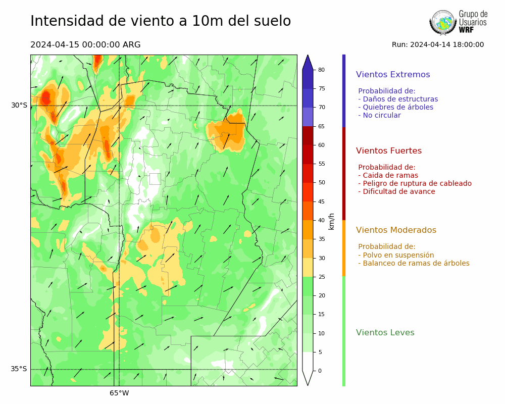 • Intensidad máxima: 13.70 km/h (17/04/2024 01hs.)