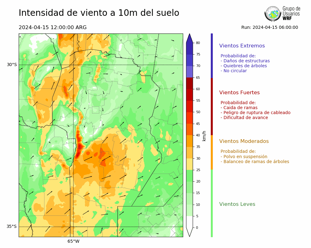 • Intensidad máxima: 14.01 km/h (15/04/2024 13hs.)