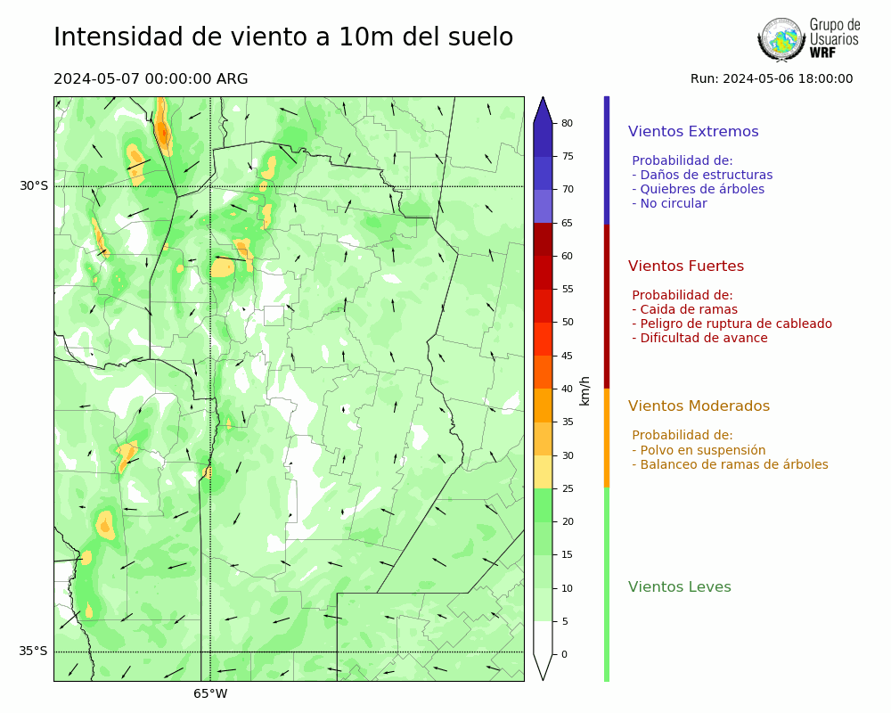 • Intensidad máxima: 16.97 km/h (07/05/2024 17hs.)