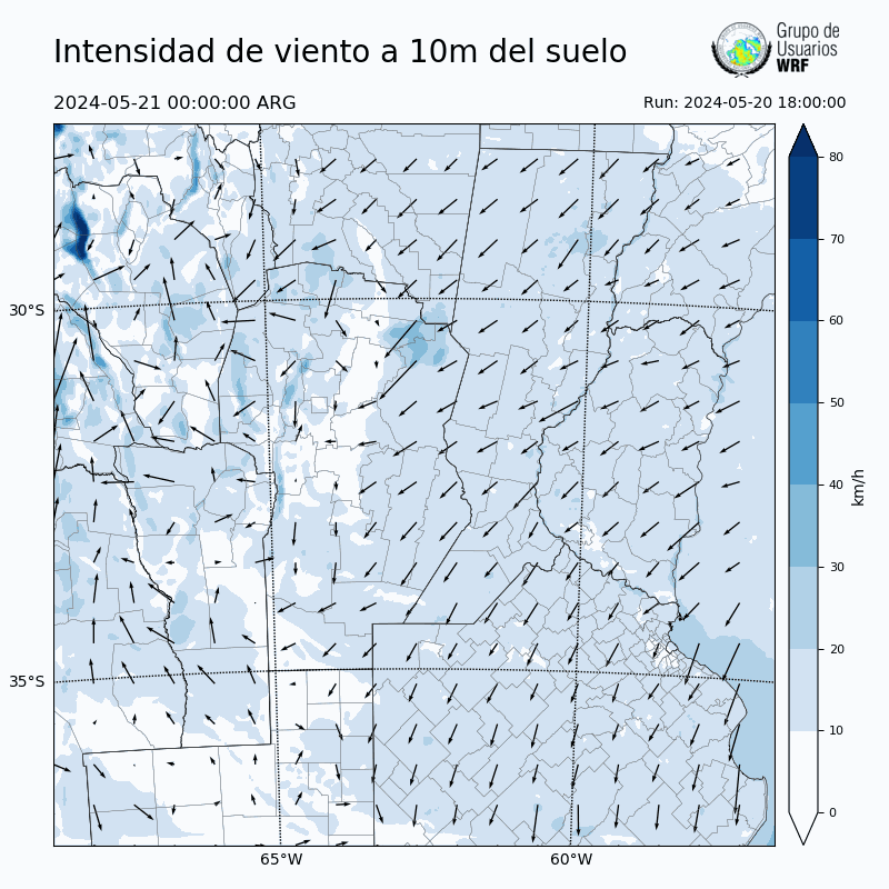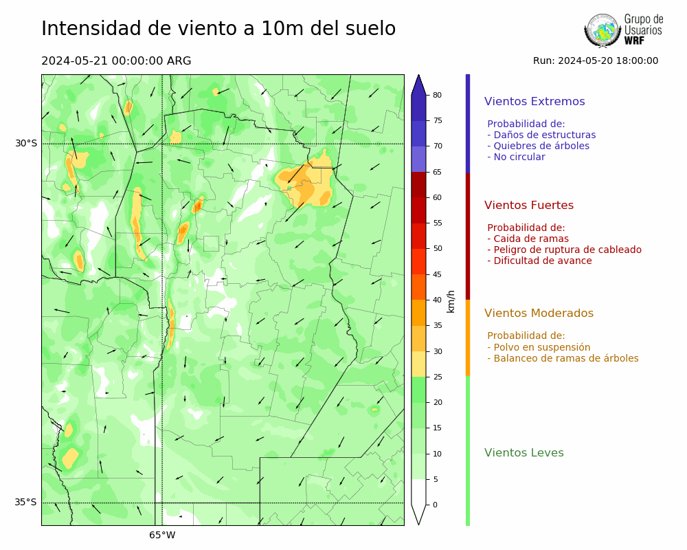• Intensidad máxima: 8.11 km/h (21/05/2024 04hs.)