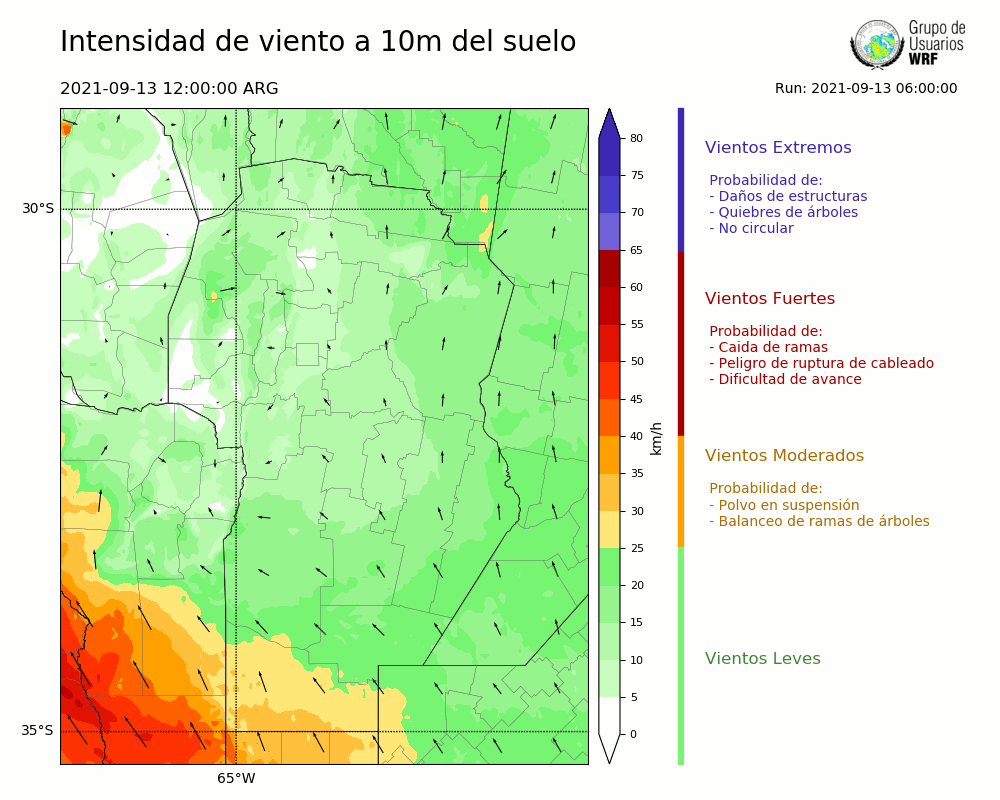 • Intensidad máxima: 6.90 km/h (13/09/2021 12hs.)