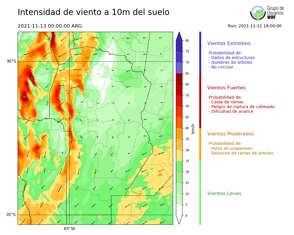 • Intensidad máxima: 12.75 km/h (13/11/2021 04hs.)