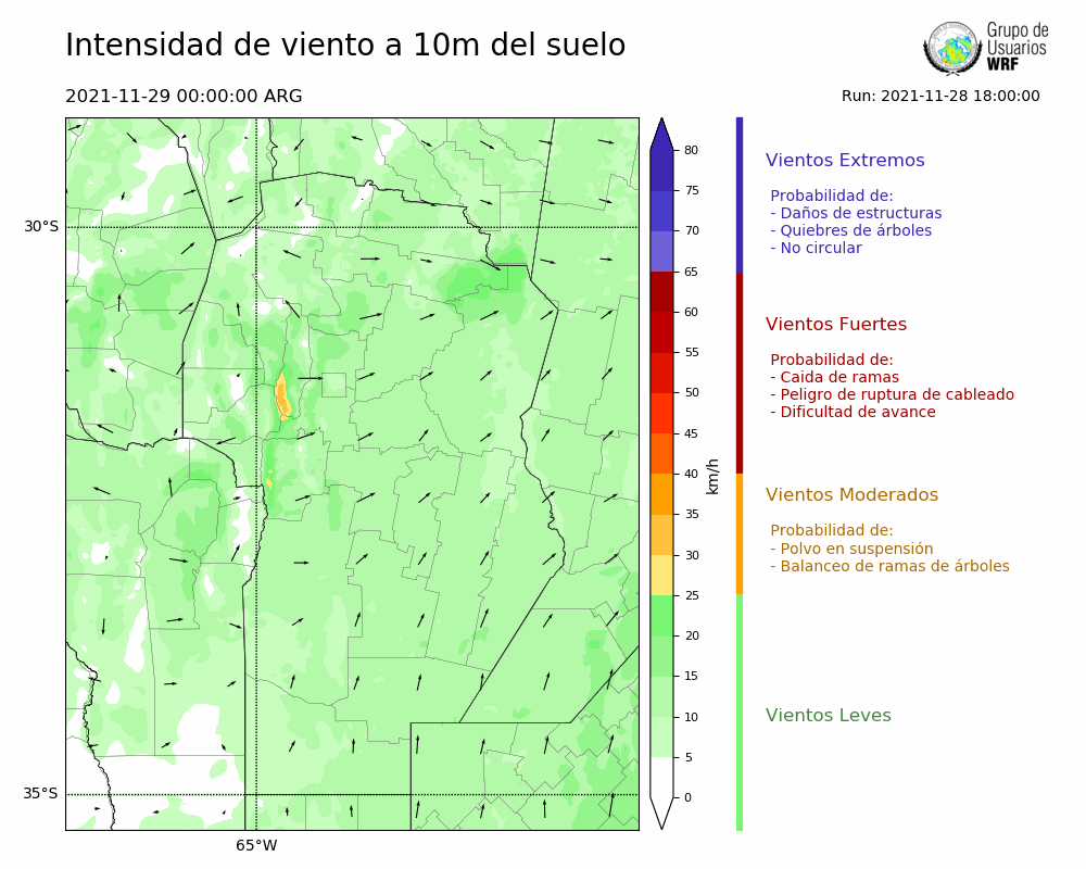 • Intensidad máxima: 15.54 km/h (29/11/2021 03hs.)