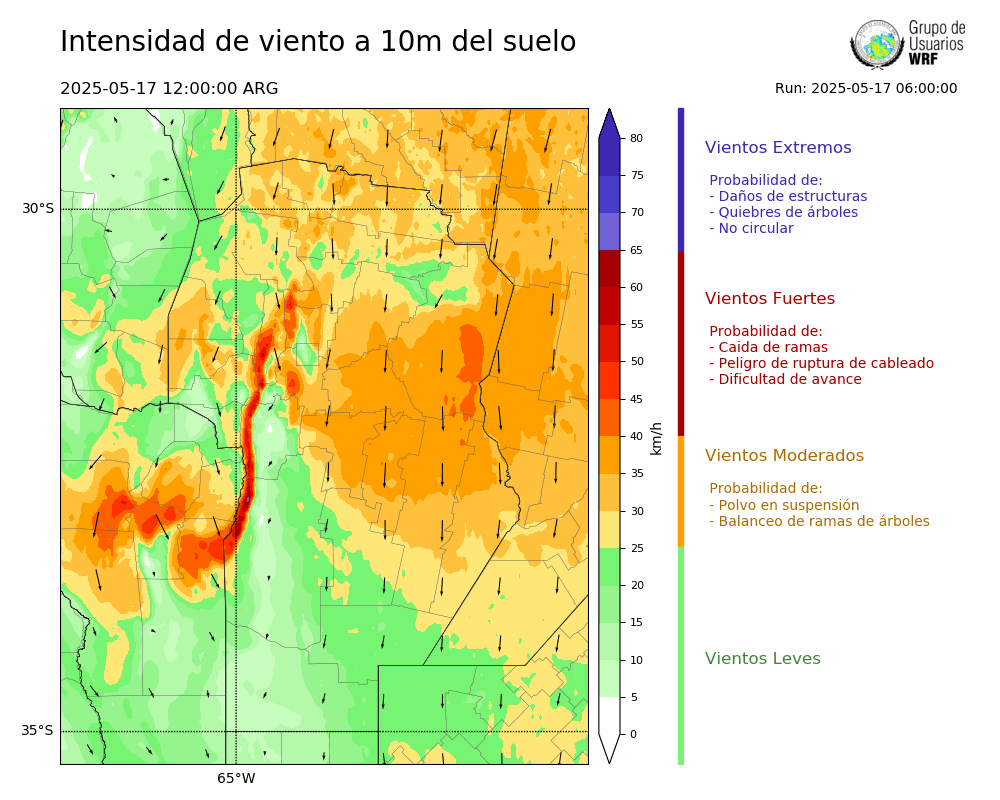 • Intensidad máxima: 29.50 km/h (17/05/2025 12hs.)
