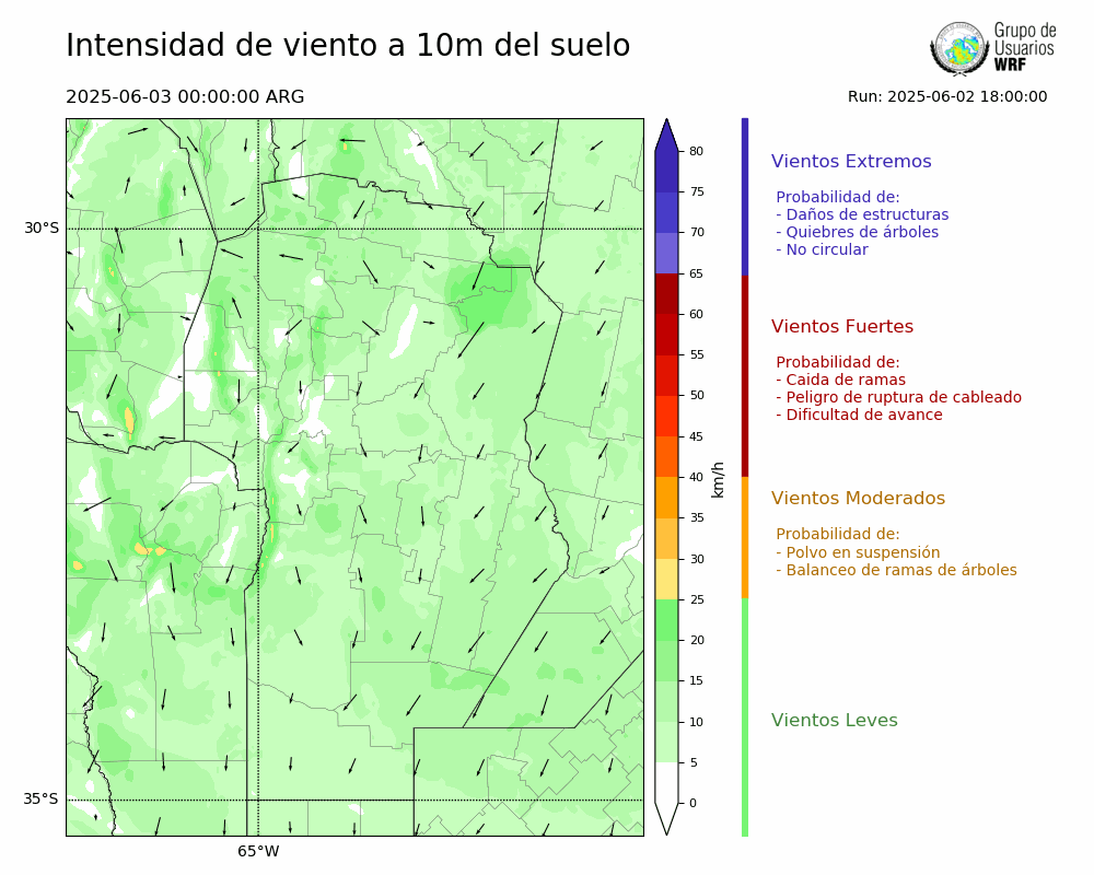 • Intensidad máxima: 7.69 km/h (03/06/2025 07hs.)