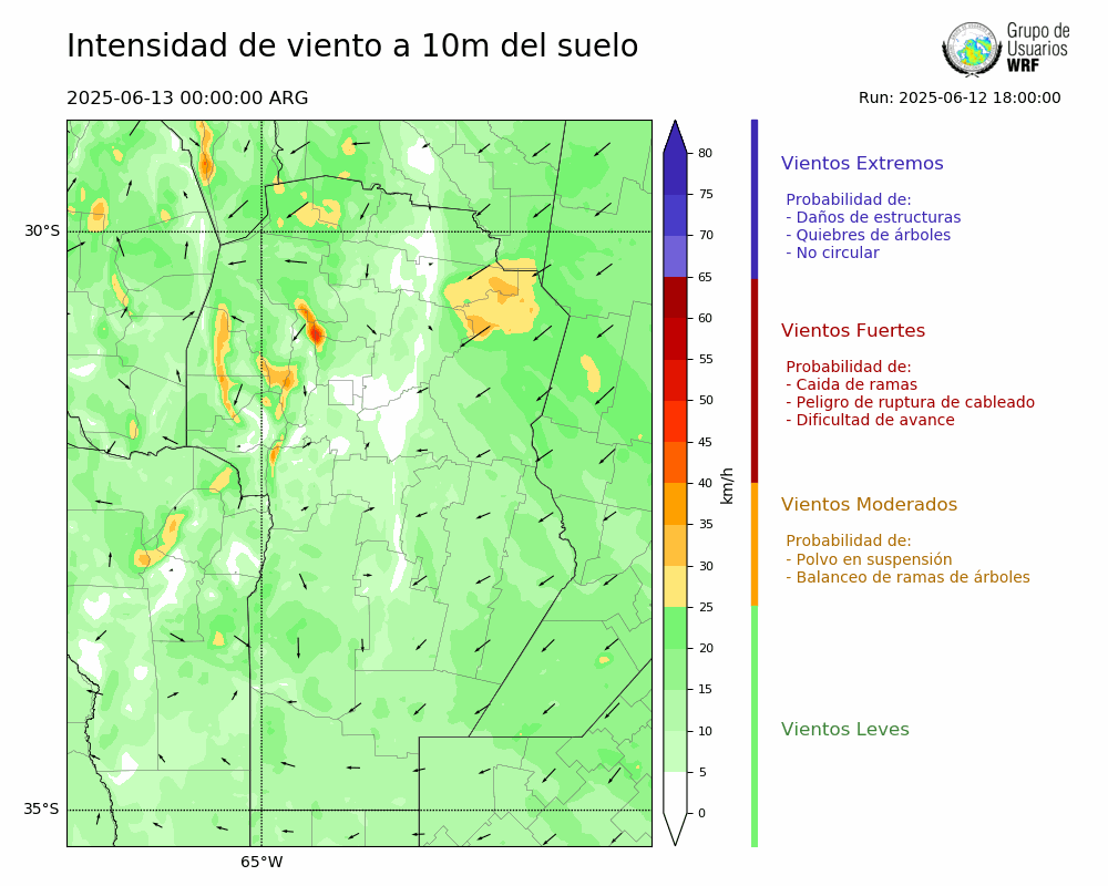 • Intensidad máxima: 11.45 km/h (13/06/2025 11hs.)
