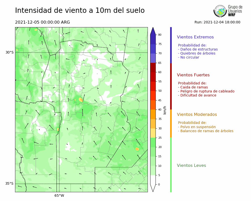 • Intensidad máxima: 10.43 km/h (07/12/2021 06hs.)