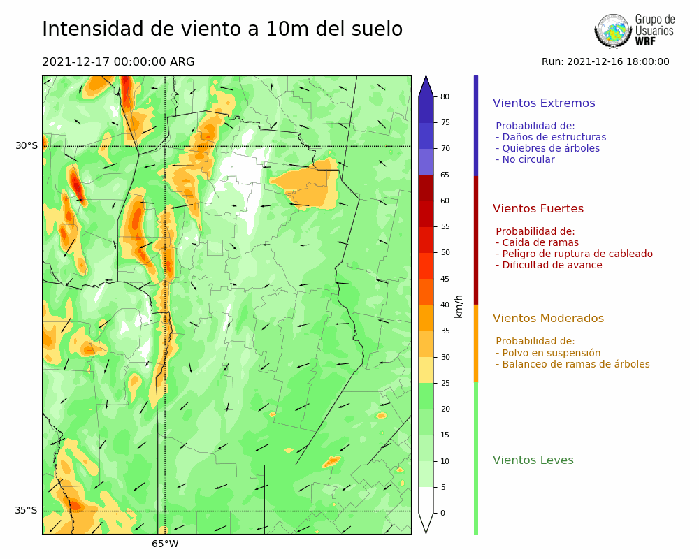 • Intensidad máxima: 1.70 km/h (18/12/2021 04hs.)