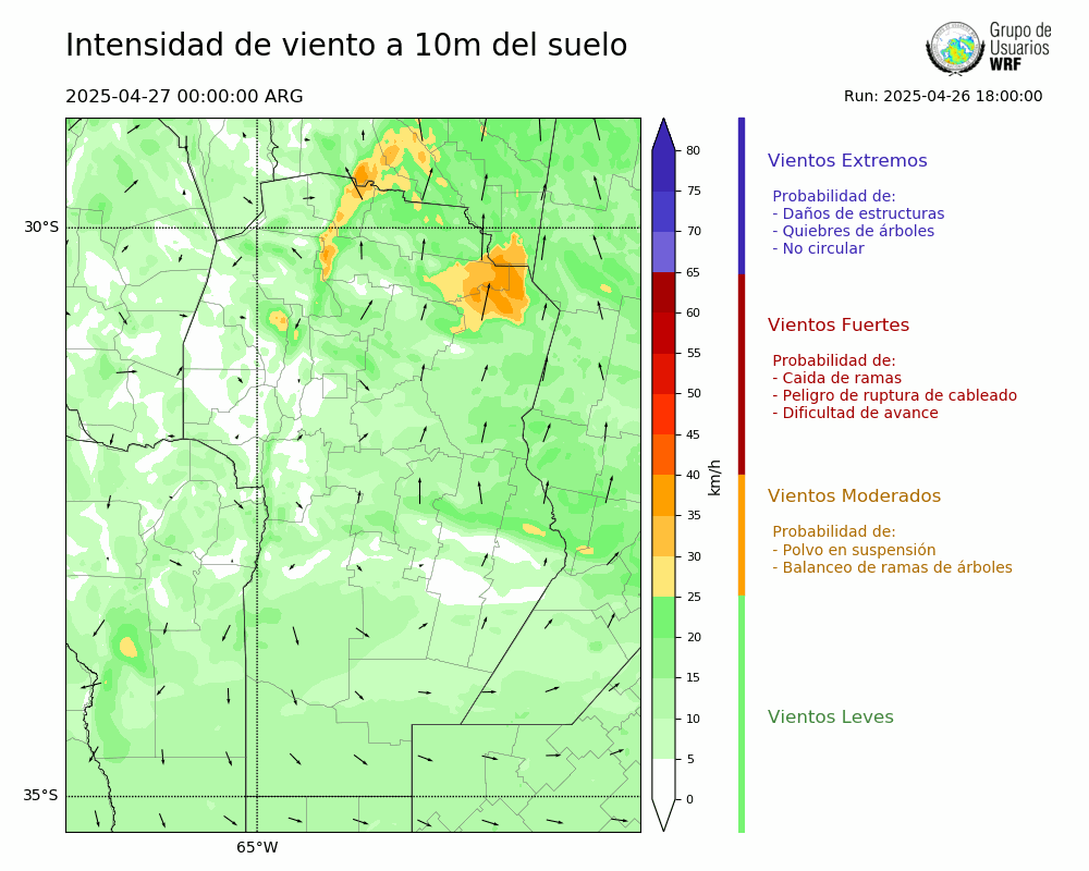 • Intensidad máxima: 12.08 km/h (27/04/2025 07hs.)