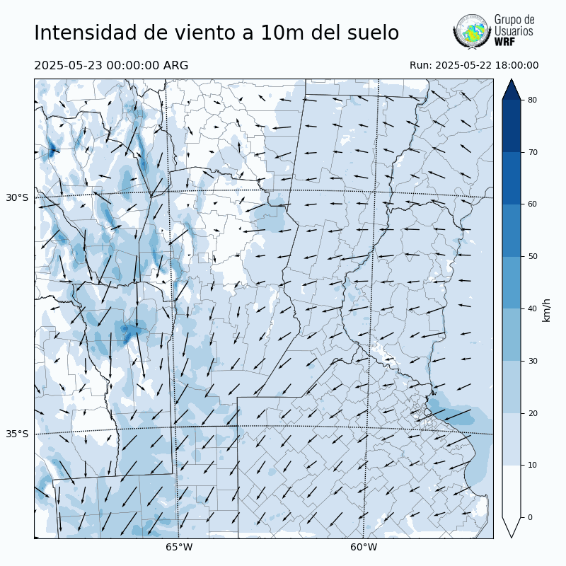 • Intensidad máxima: 11.05 km/h (23/05/2025 02hs.)