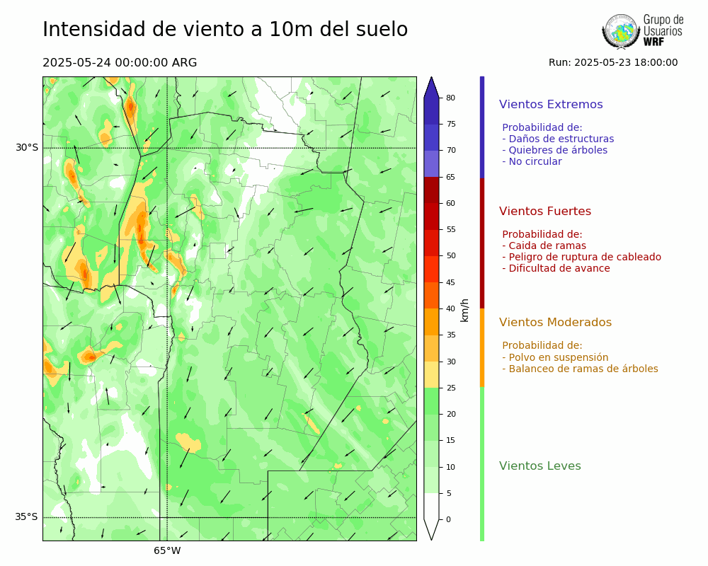 • Intensidad máxima: 11.44 km/h (24/05/2025 01hs.)