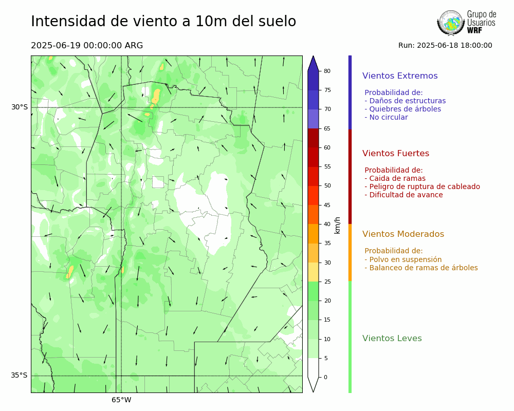 • Intensidad máxima: 13.45 km/h (19/06/2025 04hs.)