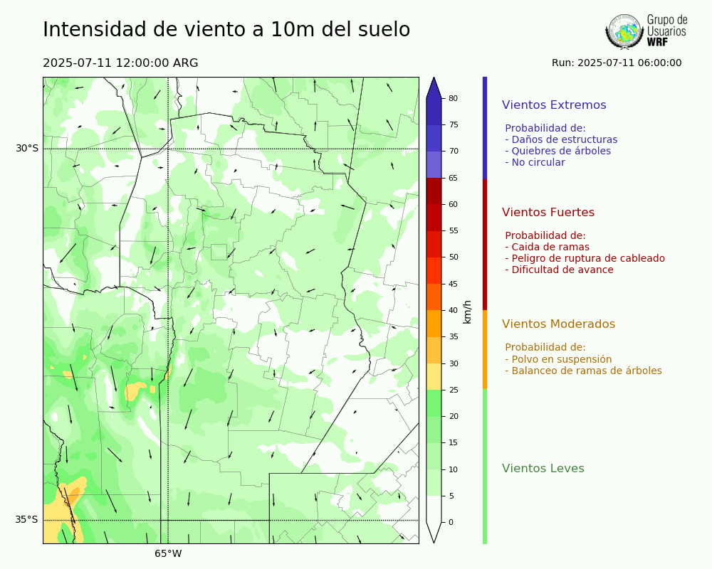 • Intensidad máxima: 6.60 km/h (12/07/2025 02hs.)