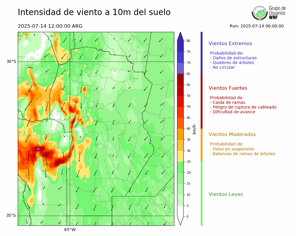 • Intensidad máxima: 9.65 km/h (15/07/2025 16hs.)