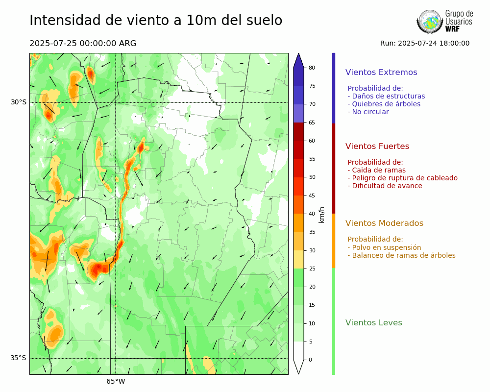 • Intensidad máxima: 8.98 km/h (25/07/2025 08hs.)