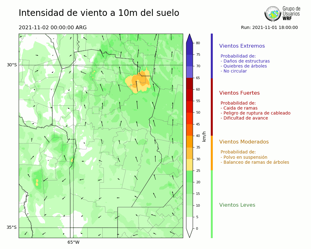 • Intensidad máxima: 18.32 km/h (04/11/2021 11hs.)