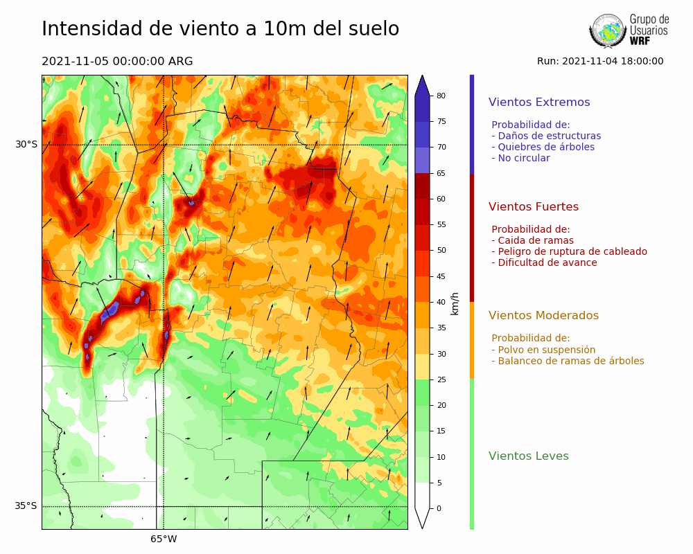 • Intensidad máxima: 32.30 km/h (05/11/2021 03hs.)