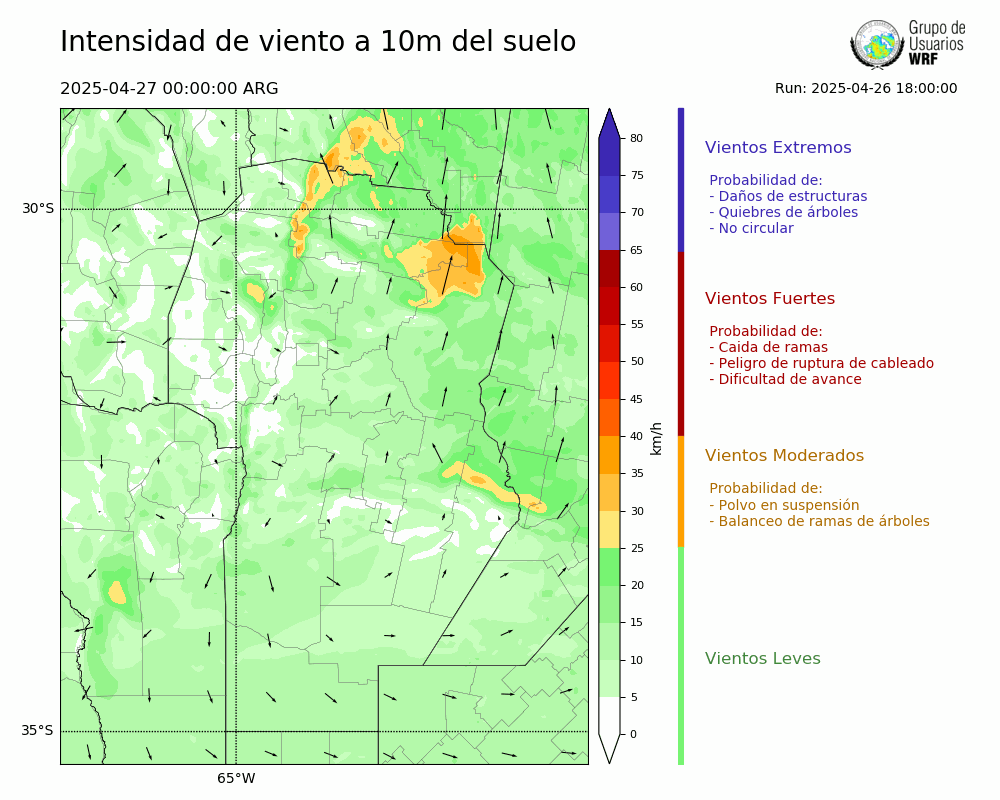 • Intensidad máxima: 12.00 km/h (27/04/2025 07hs.)