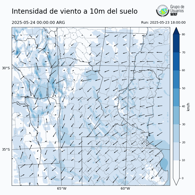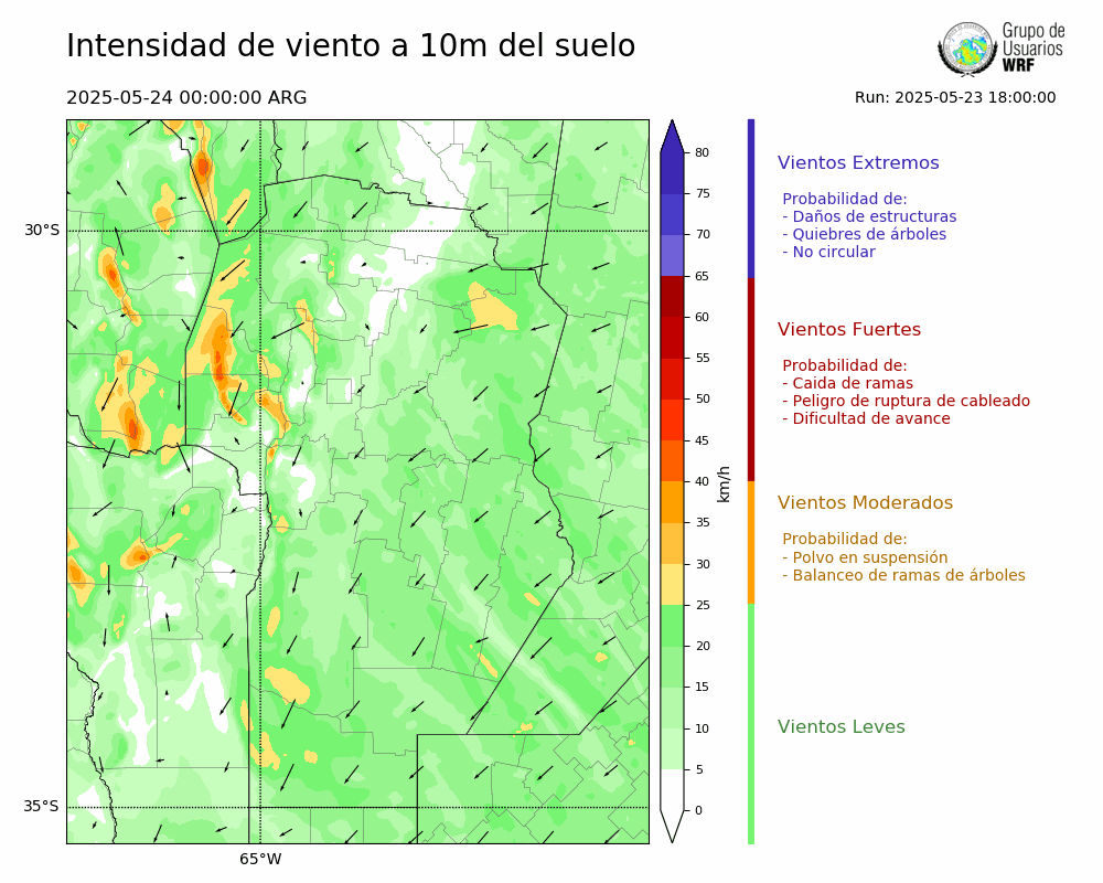 • Intensidad máxima: 10.17 km/h (24/05/2025 01hs.)