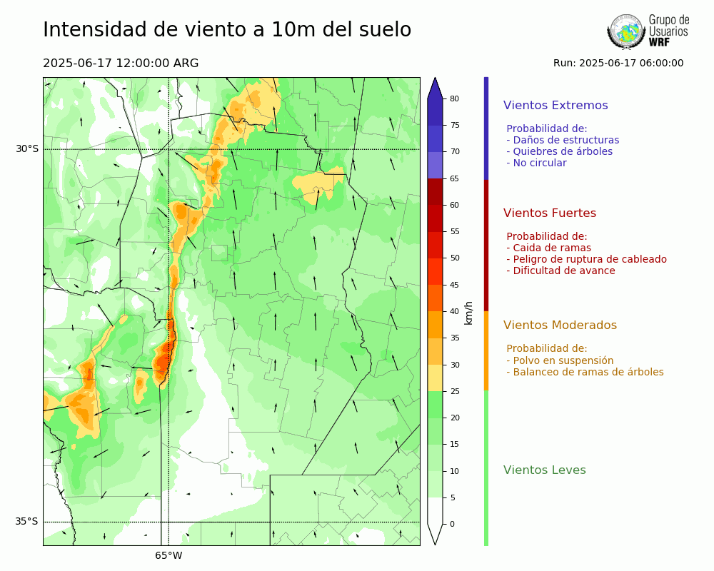 • Intensidad máxima: 12.79 km/h (17/06/2025 13hs.)