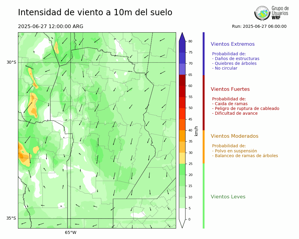 • Intensidad máxima: 14.85 km/h (27/06/2025 17hs.)