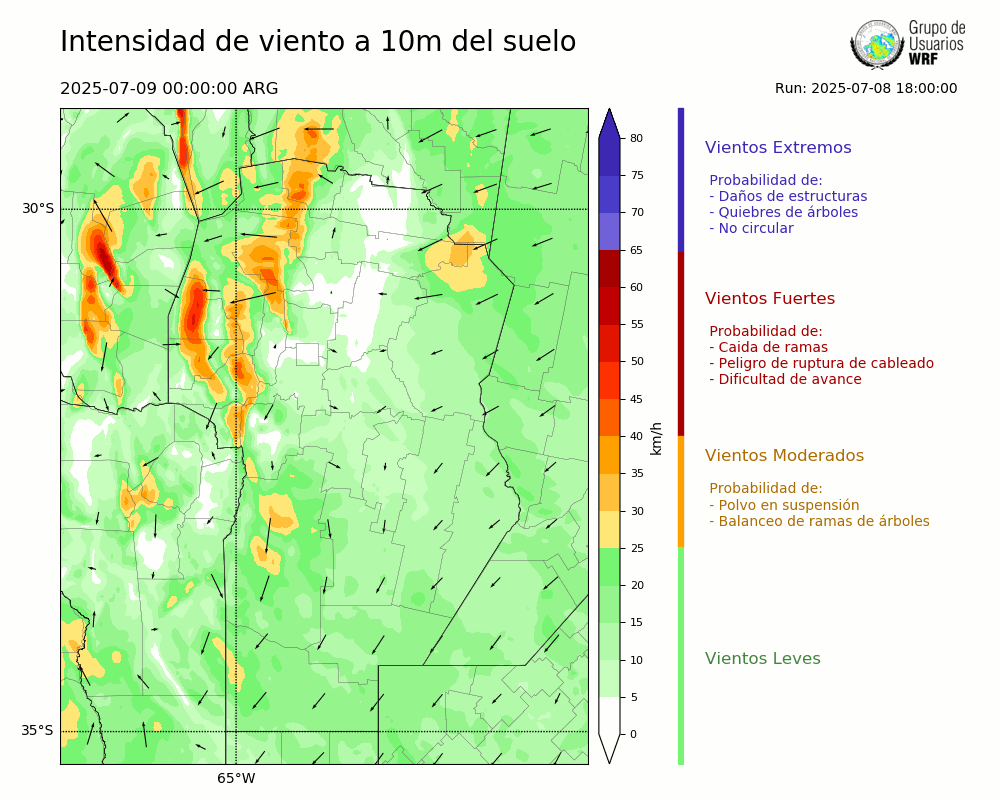 • Intensidad máxima: 5.14 km/h (09/07/2025 04hs.)