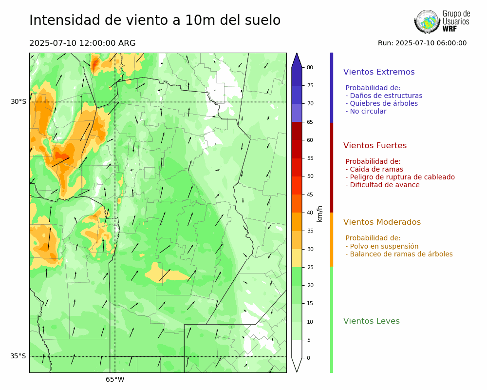 • Intensidad máxima: 9.85 km/h (10/07/2025 14hs.)