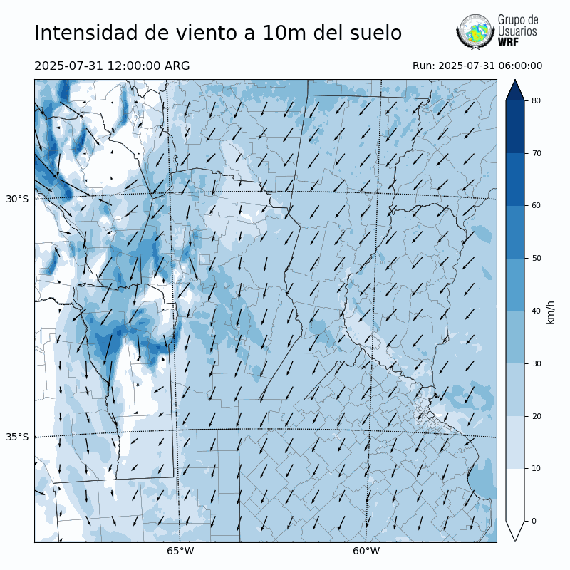 • Intensidad máxima: 7.07 km/h (31/07/2025 19hs.)