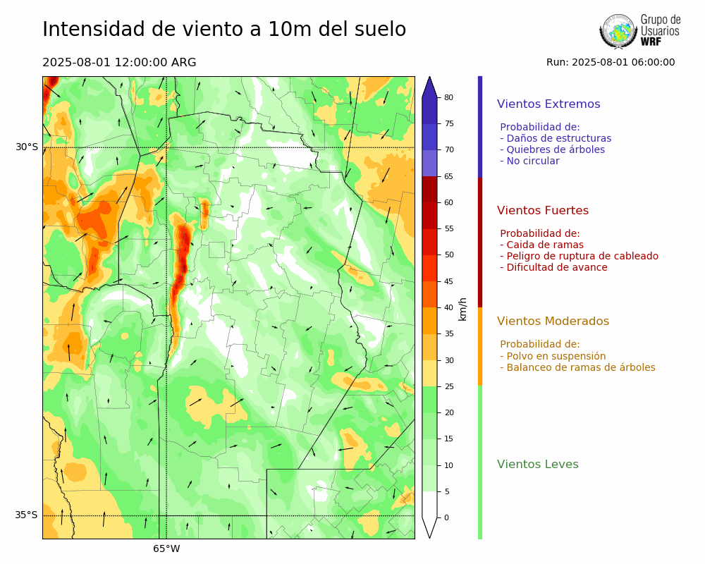 • Intensidad máxima: 7.01 km/h (01/08/2025 18hs.)