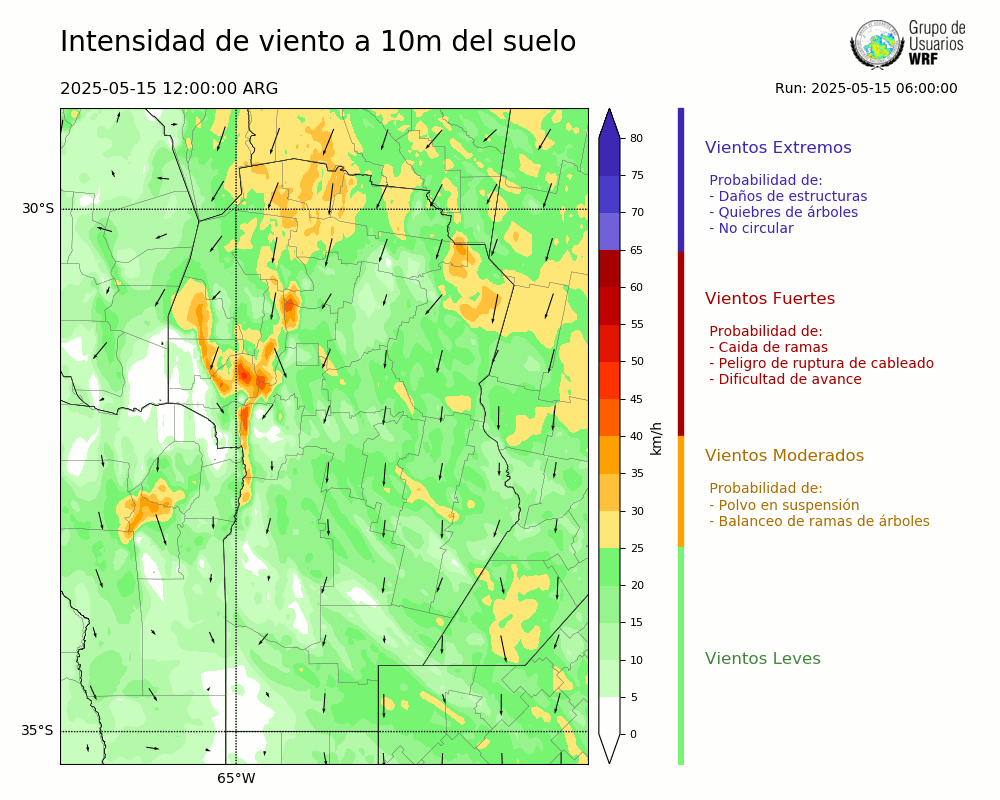 • Intensidad máxima: 20.24 km/h (15/05/2025 14hs.)