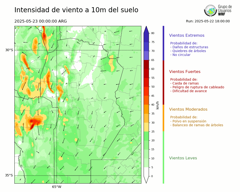 • Intensidad máxima: 9.81 km/h (23/05/2025 04hs.)