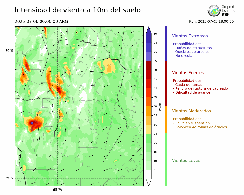 • Intensidad máxima: 11.68 km/h (06/07/2025 03hs.)