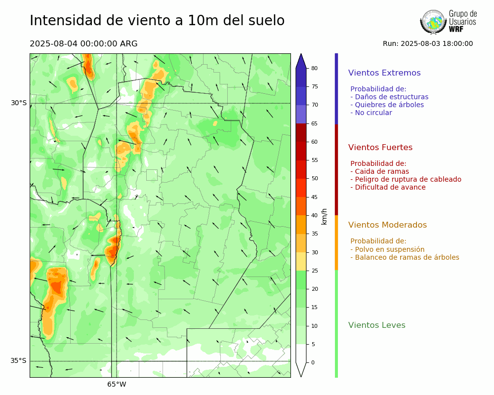 • Intensidad máxima: 7.19 km/h (04/08/2025 06hs.)