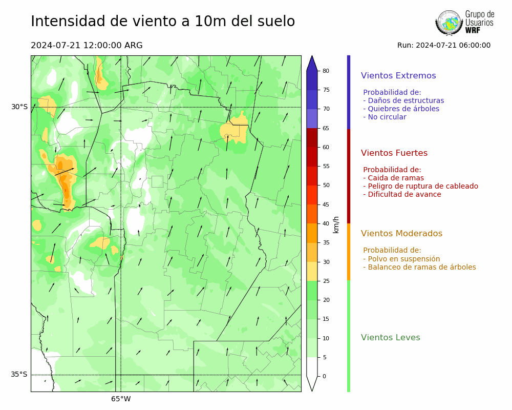 • Intensidad máxima: 7.87 km/h (21/07/2024 16hs.)