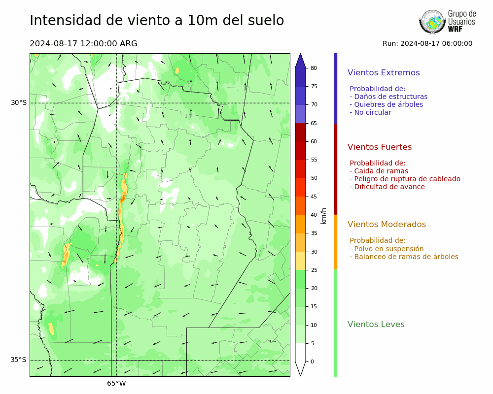 • Intensidad máxima: 16.95 km/h (17/08/2024 16hs.)