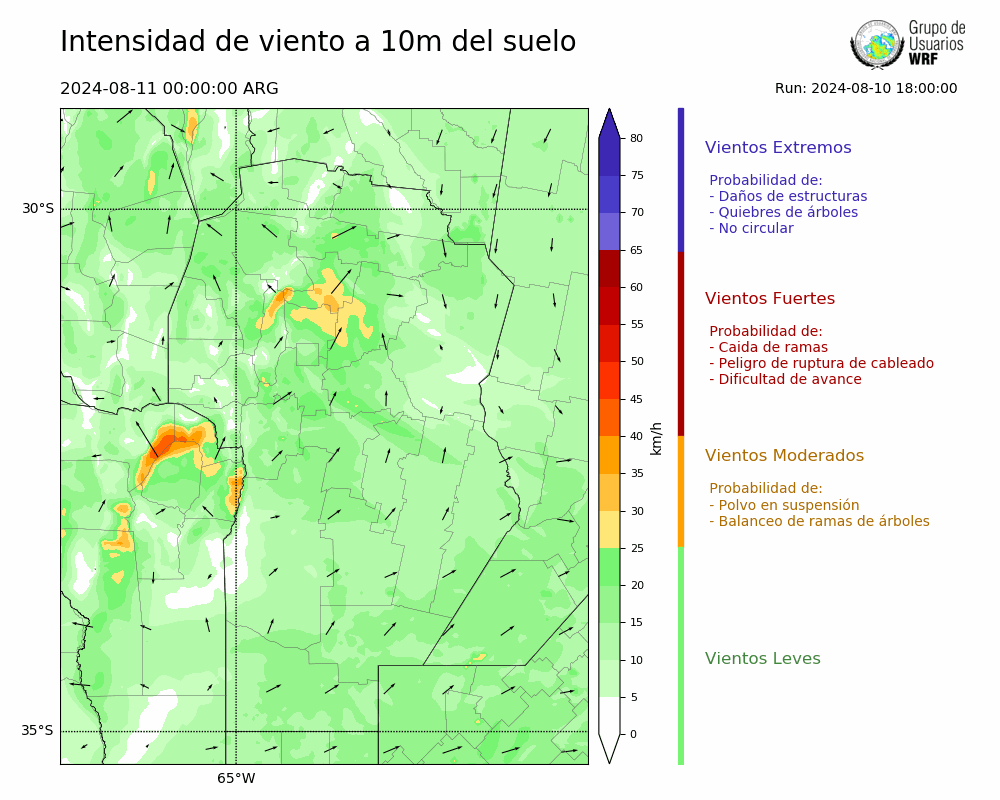 • Intensidad máxima: 20.73 km/h (11/08/2024 10hs.)
