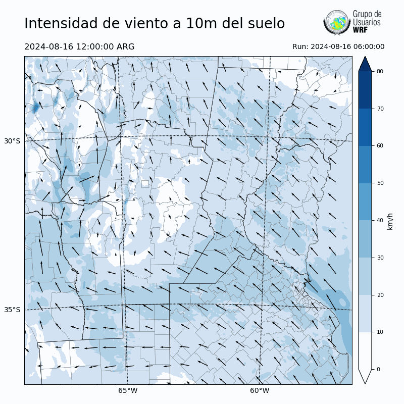 • Intensidad máxima: 12.21 km/h (16/08/2024 17hs.)
