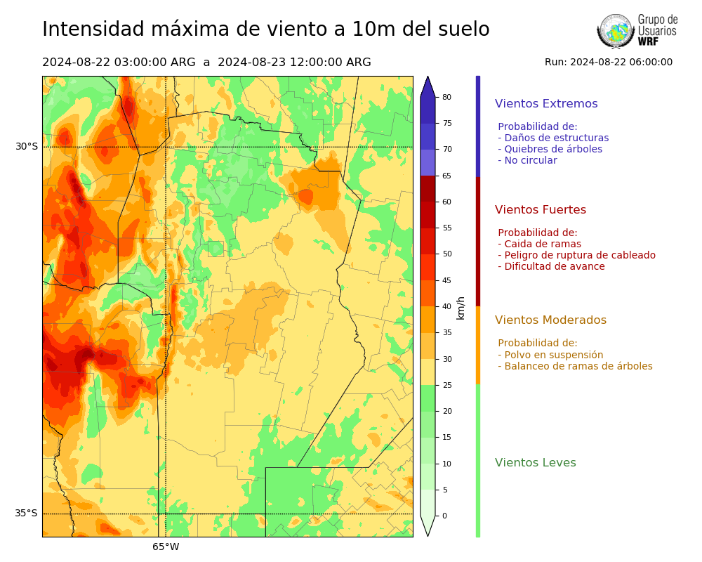 • Intensidad máxima: 19.68 km/h (22/08/2024 12hs.)