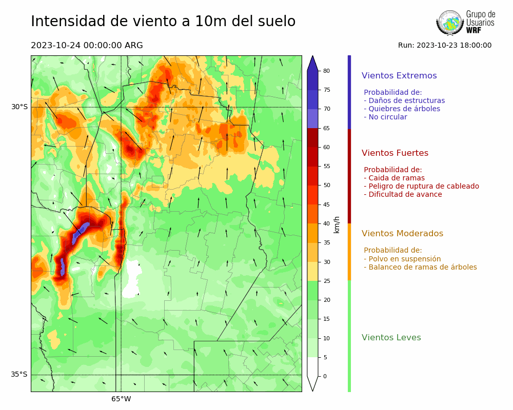 • Intensidad máxima: 7.04 km/h (26/10/2023 05hs.)